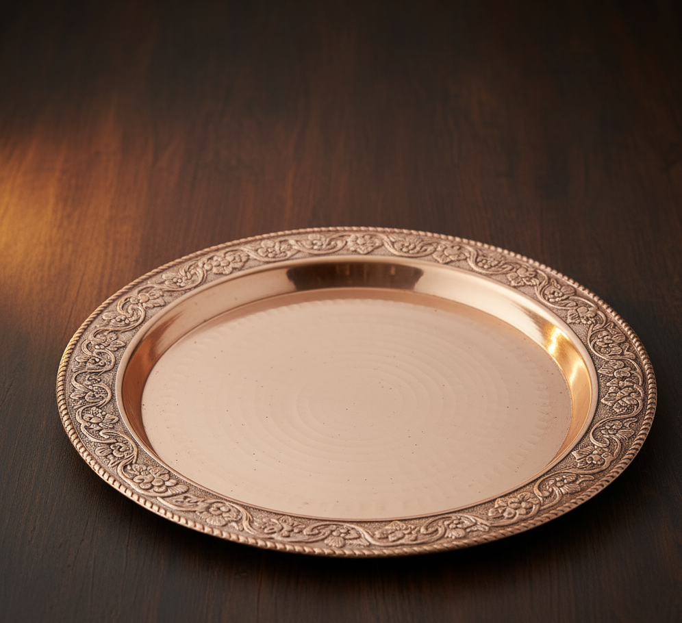 Bring home the blessings of tradition with our Premium Copper Puja Thali Set, thoughtfully designed for your daily worship and festive rituals. Crafted from pure copper, this thali not only adds grace to your pooja room but also retains the spiritual essence of the metal — known for its purifying properties.